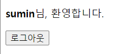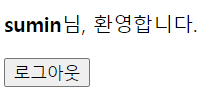 로그인에 성공했다. sumin으로 로그인이 된 이유는 데이터베이스에 저장된 맨 처음 계정이 sumin이라 그렇다.