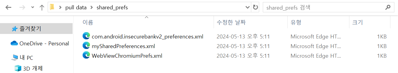 특히 shared_prefs 디렉터리는 취약점 분석할 때 계속 확인해봐야하는 가장 중요한 디렉터리!!