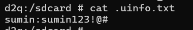 cat 명령어로 파일 내용을 확인해 보니 방금전 입력한 아이디와 패스워드가 저장되어있다.